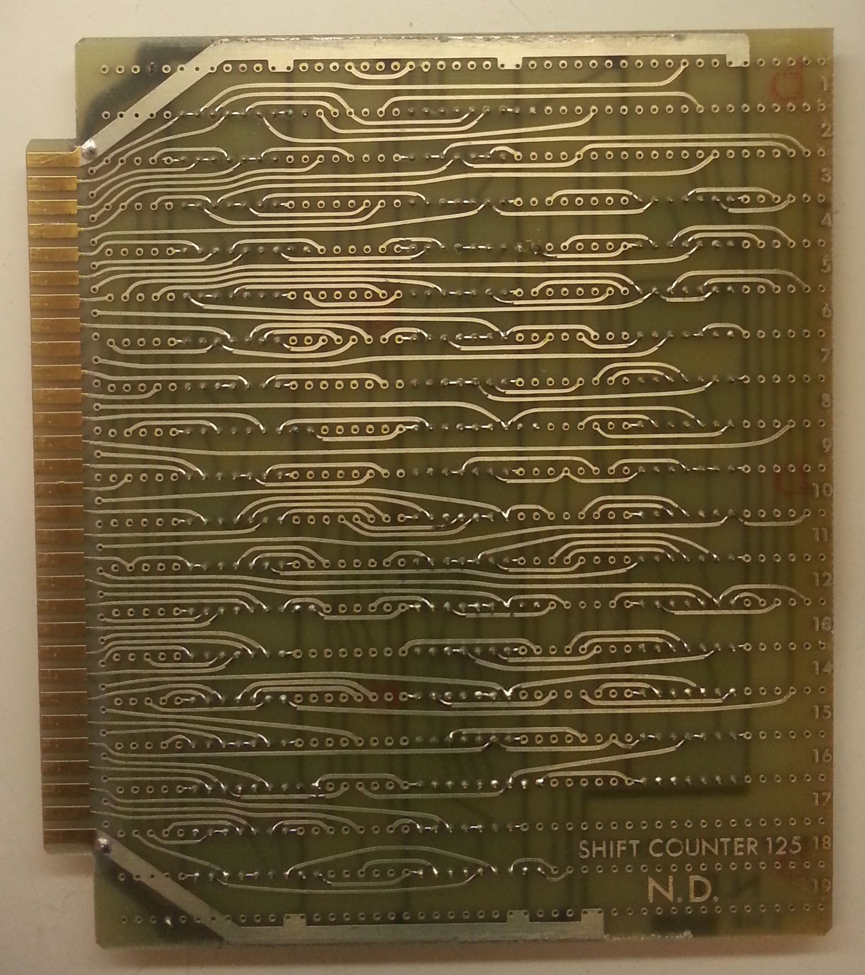 Card 125, Shift counter, from CPU in NORD-1 Serial 47, solder side.