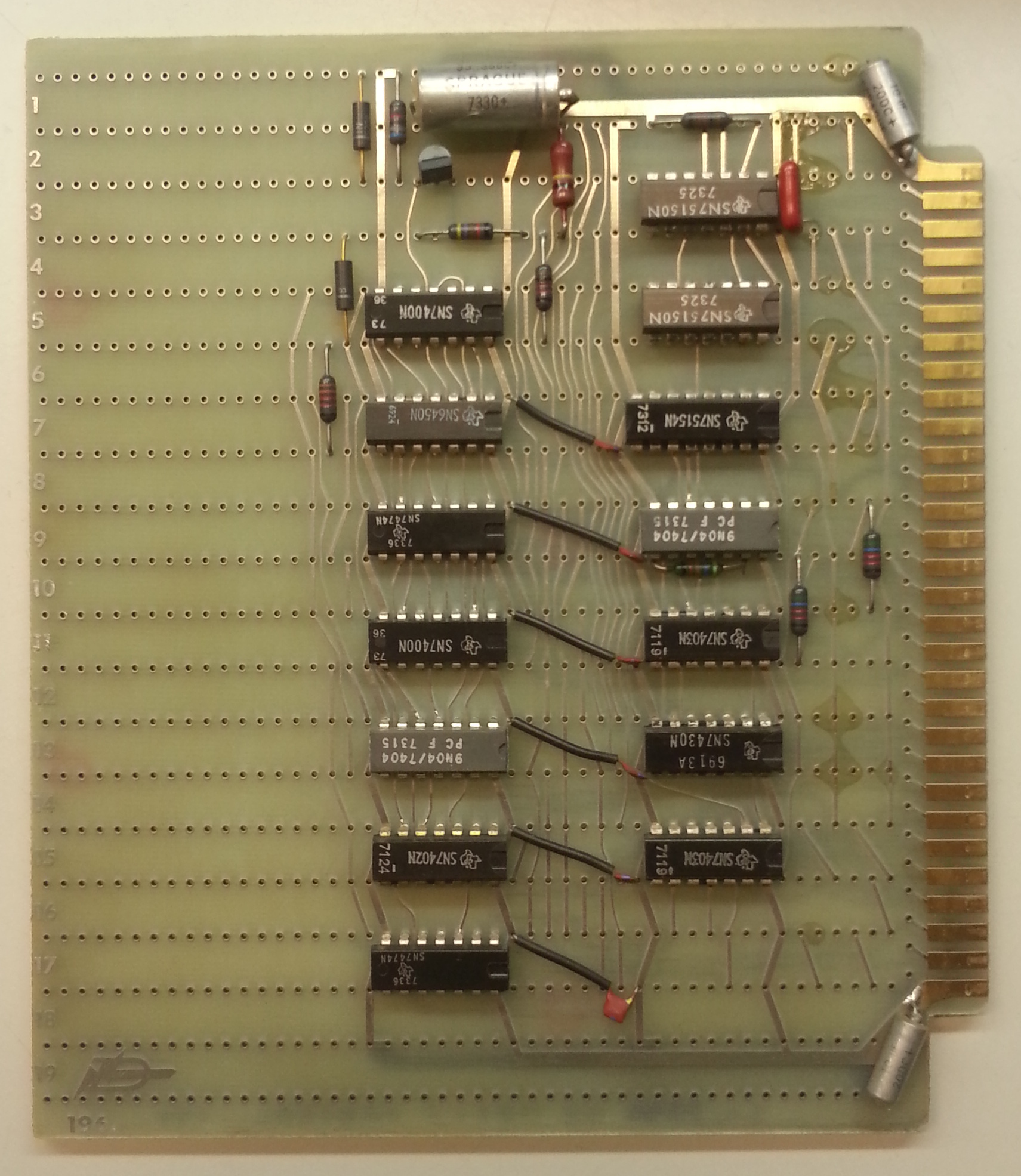 Card 196, GH 1101-J control, from CPU in NORD-1 Serial 47, component side.