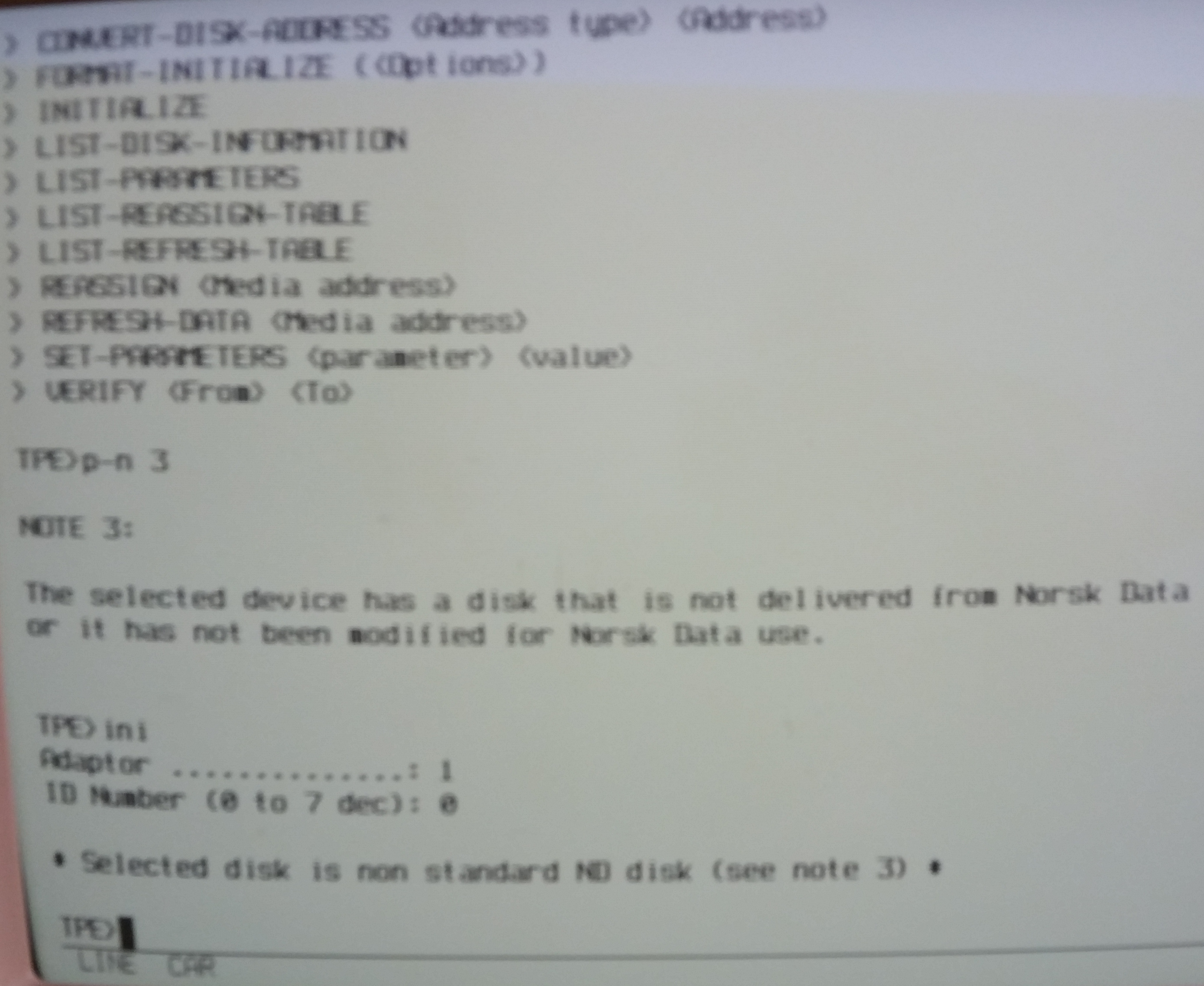 (Screenshot of the Disk Media Maintenance (DISK-MM-B00) program from ND-210523G. What "program note 3" says. Category:210523G02-XX-02D Category:ND-210523) |