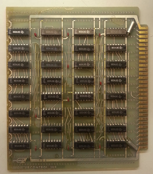Revision as of 02:33, 24 July 2016 by Gandalf (talk | contribs) (Card 109, Register control, from CPU in NORD-1 Serial 47, component side.)