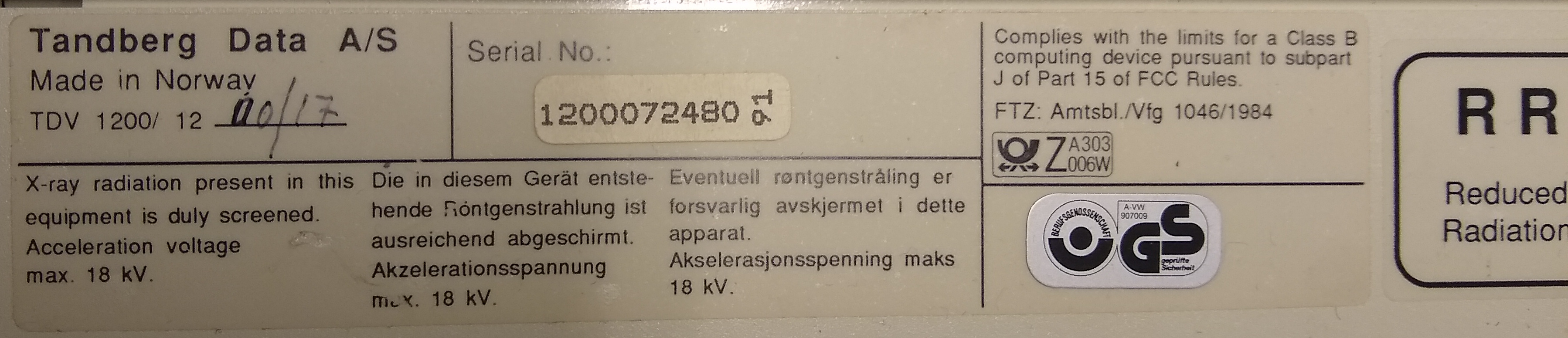 Tandberg TDV 1200 terminal - underside label - picture 2.