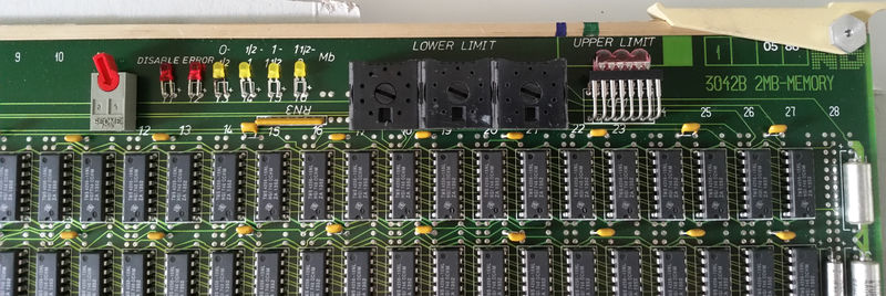 3042 - 2 Megabyte RAM card, closeup o the switches and indicators area.