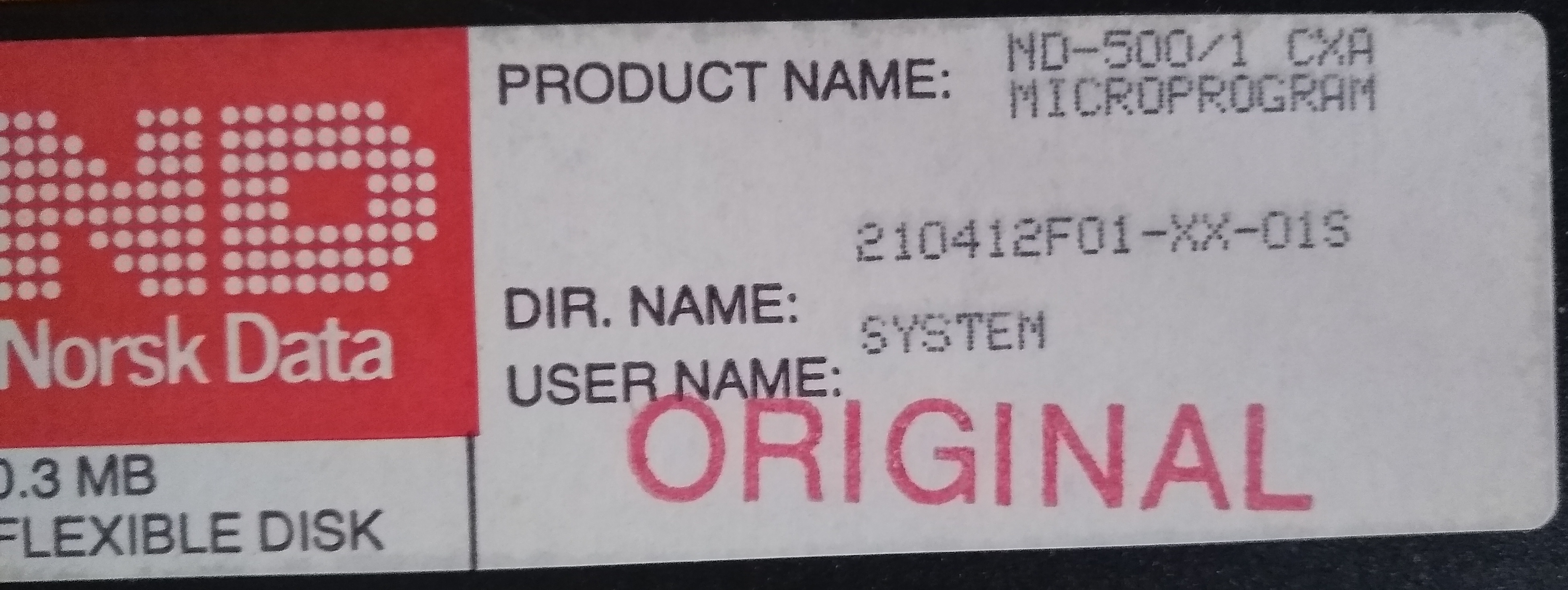 | current | 19:26, 26 May 2024 | 3,899 × 1,467 (1.43 MB) | Tingo (talk | contribs) | Image of a ND-210412F01 8 inch floppy label. ND-500/1 CXA Microprogram. |