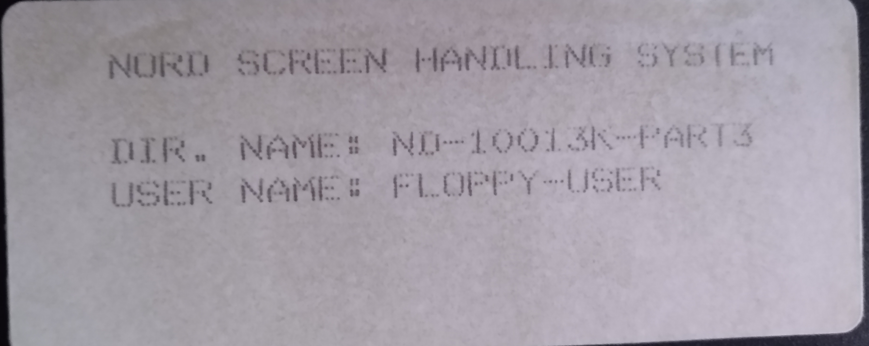 Image of a 8 inch floppy label. NORD Screen Handling System. Part3.