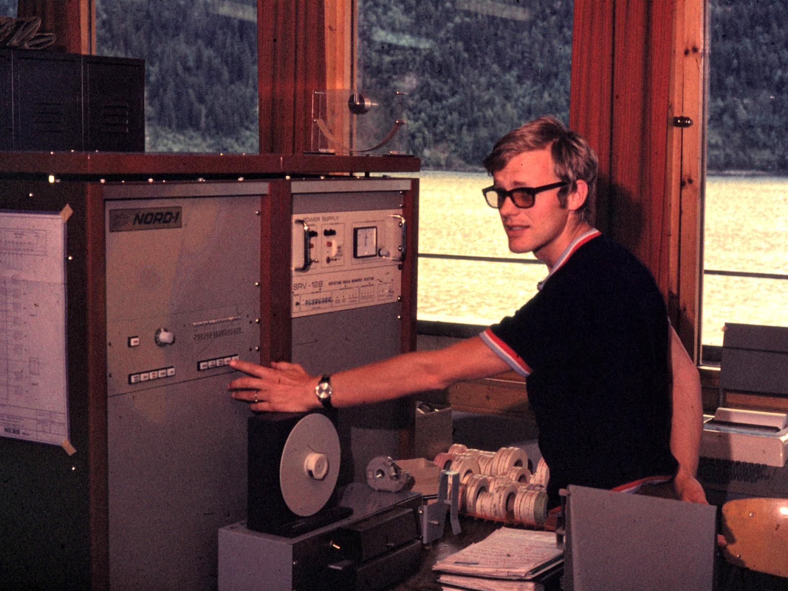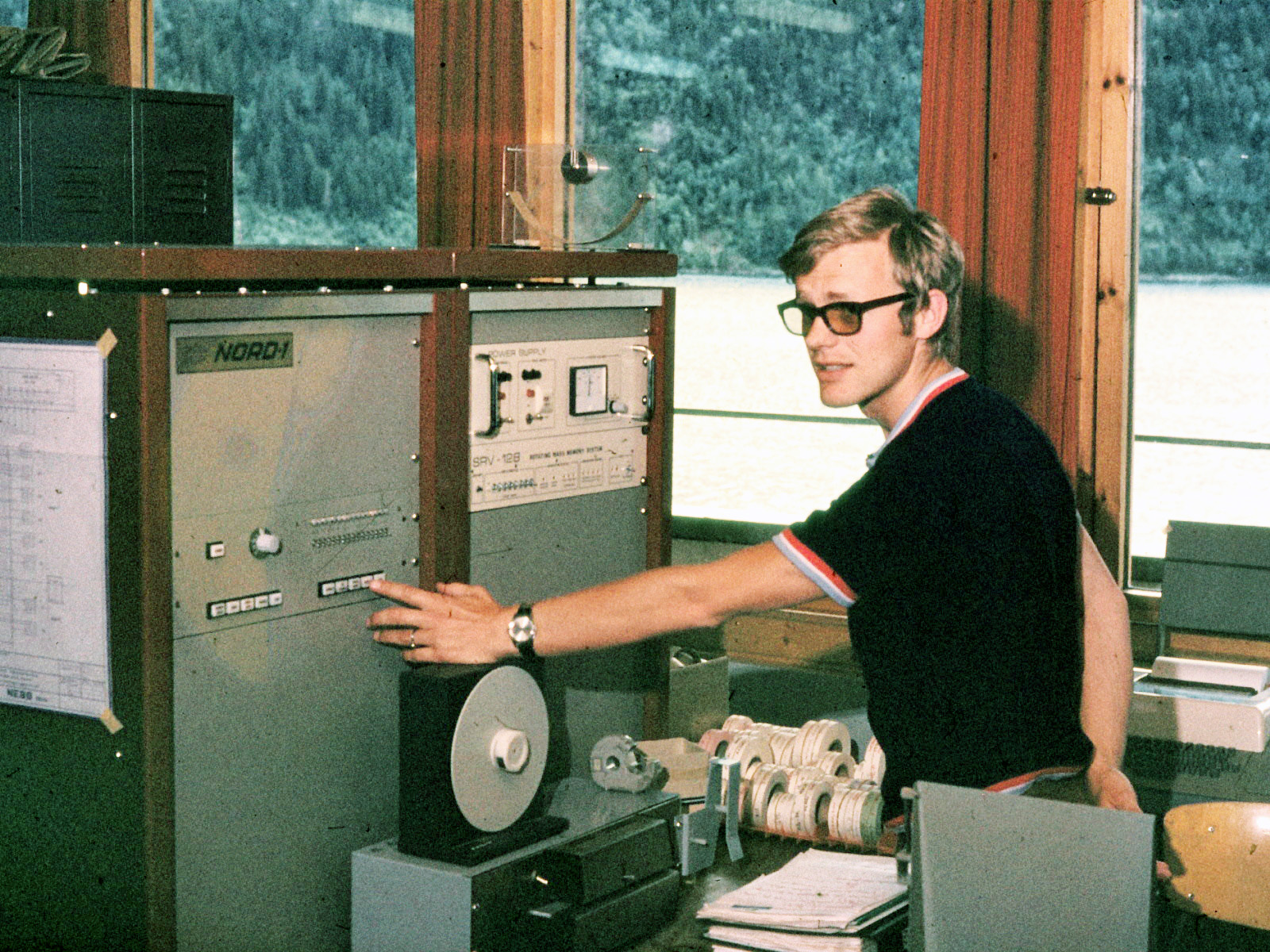 Project Manager Ivar Westhagen, Norsk Elektrisk & Brown Boveri AS, press the start button on Nord-1 serienr 28. |