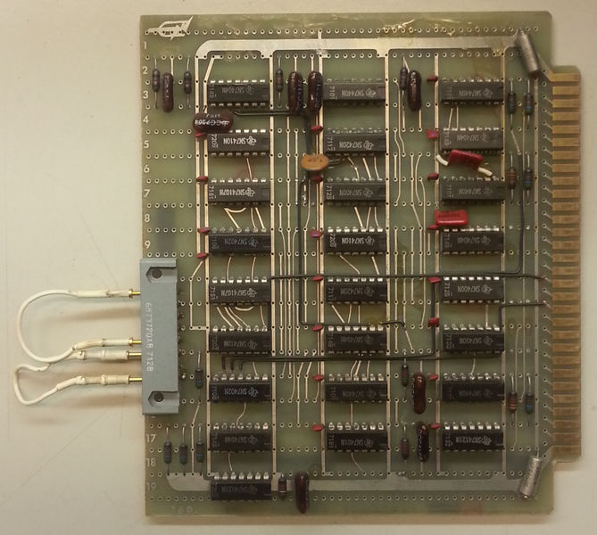 | current | 04:15, 24 July 2016 | 1,675 × 1,502 (815 KB) | Gandalf (talk | contribs) | Card 169, Cambridge control, from CPU in NORD-1 Serial 47, component side. |