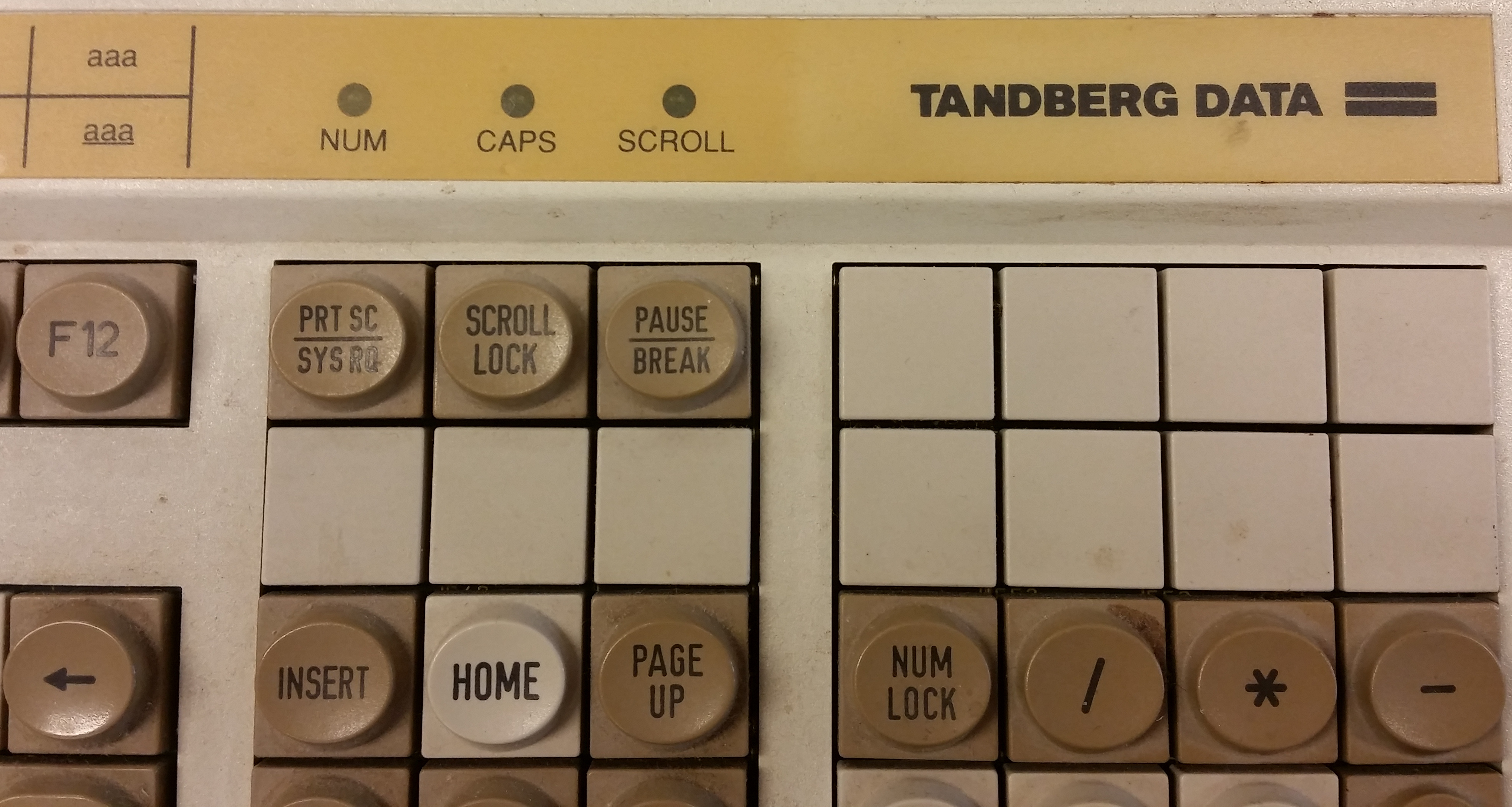 Tandberg TDV5010 keyboard - closeup of Tandberg logo.