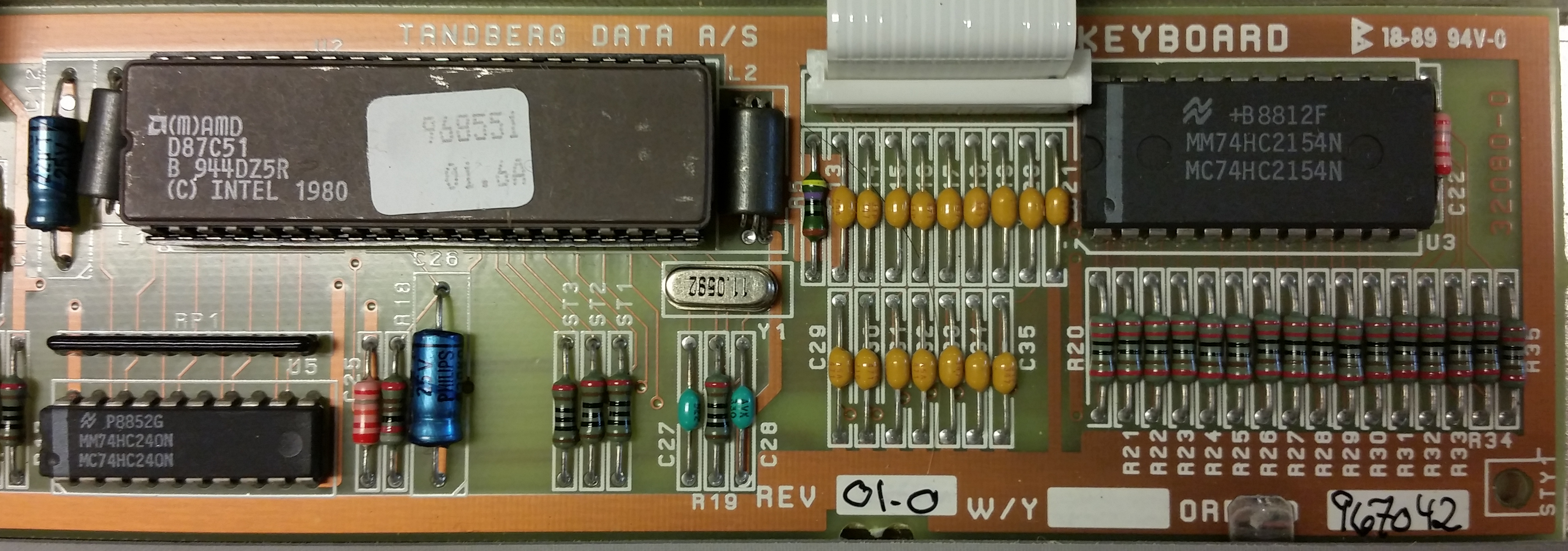 Tandberg TDV5010 keyboard - inside, closeup of controller PCB (right side).