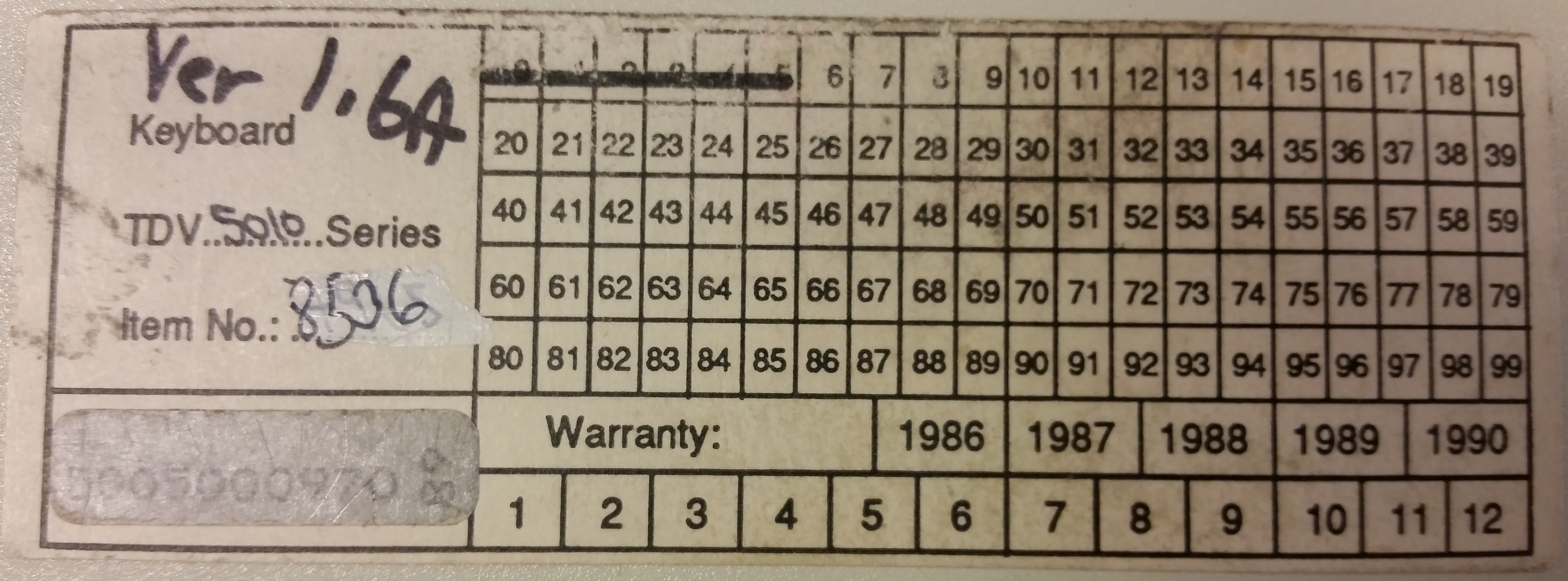 Tandberg TDV5010 keyboard - version number and more label, underside.