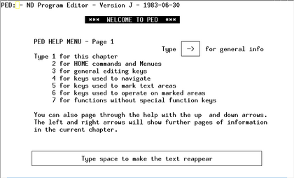 PED, the Programmers' EDitor, is a powerful screen-based text editor made by Norsk Data.